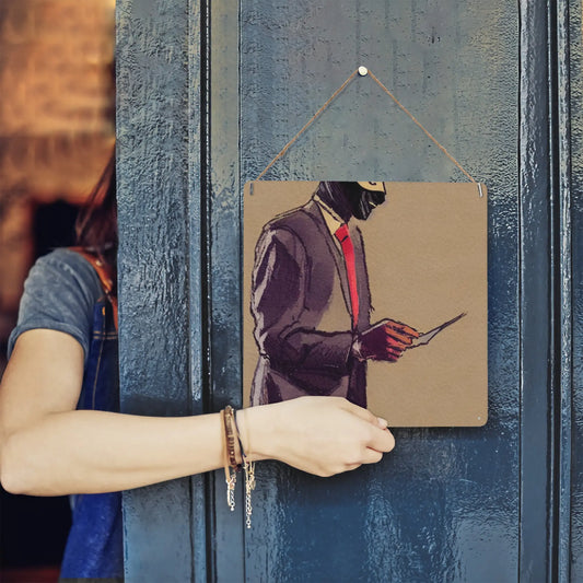 "Ski Mask Workers" | Square Steel Cut Out Shape Metal Art | Artist Designed