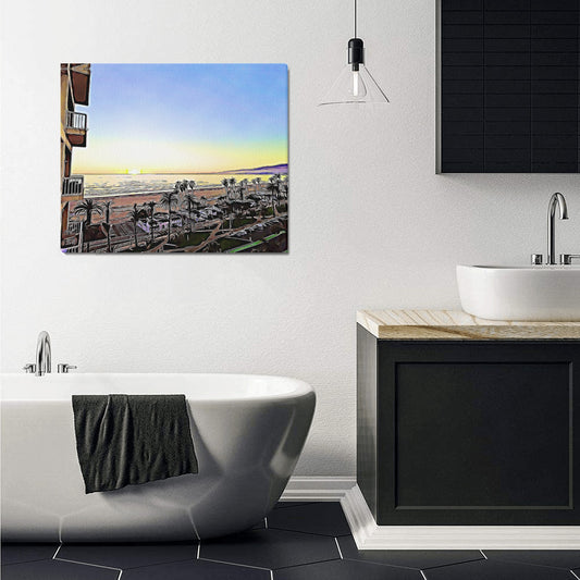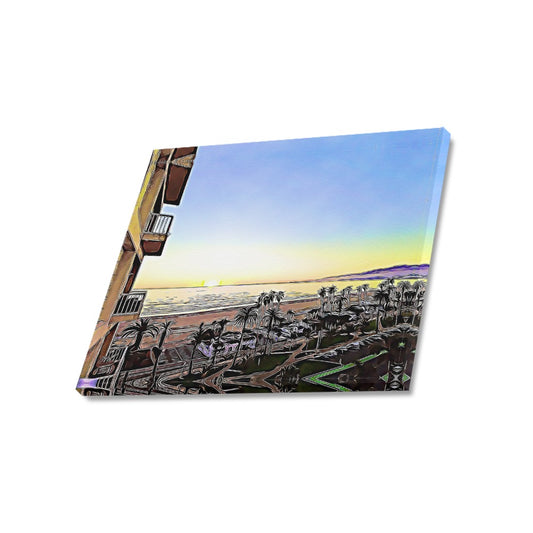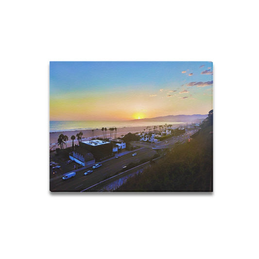Down the Coast and Into the Sunset | Santa Monica Artist | Frame Canvas Print 24"x20" Made in the USA